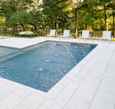 The other type of concrete pavers are architectural concrete pavers. These pavers are thinner — from 5/8” to 1 1/2 inches compared to 3-inch-thick driveway pavers. Architectural pavers are fantastic for outdoor hardscapes, pool decks, interior flooring, and more.